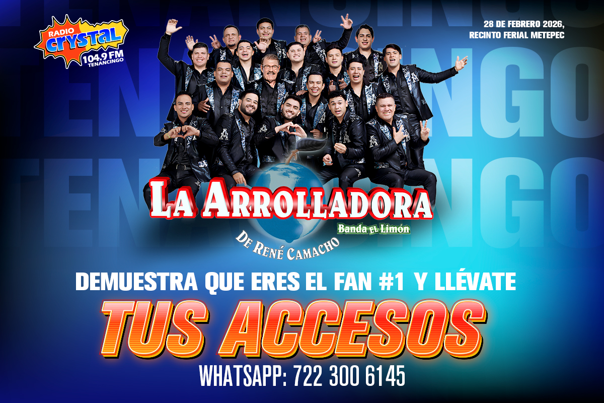 En Radio Crystal Tenancingo 104.9 FM estamos regalando cortesías dobles para el concierto de La Arrolladora, que se llevará a cabo el próximo 28 de febrero en el Recinto Ferial de Metepec.